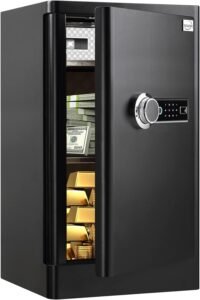 Built with strong and durable materials, the safe is designed with fireproof protection to help safeguard important belongings from heat and fire damage. Its sturdy construction provides reliable security and long-term durability, making it a dependable solution for protecting valuables.