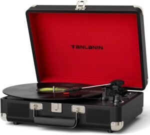 The TANALNIN Vinyl Record Player combines vintage style with modern features, making it a perfect choice for music lovers and vinyl collectors. Designed in a classic portable suitcase style, this turntable is easy to carry and adds a stylish retro touch to any home, bedroom, or living space. Its compact design makes it ideal for both everyday listening and decorative room setups.