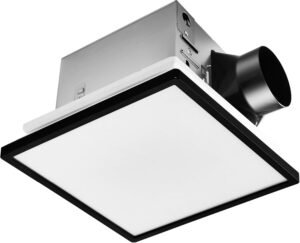 The Tech Drive Bathroom Exhaust Fan with Light is designed to provide powerful ventilation and modern lighting for your bathroom. With a strong 110 CFM airflow, this fan efficiently removes humidity, odors, and moisture, helping maintain a fresh and comfortable bathroom environment. Its quiet operation ensures effective ventilation without creating disruptive noise.