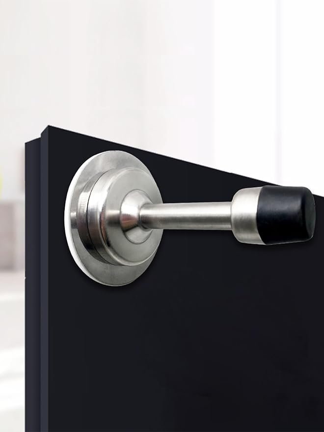 Keep your home protected and quiet with the 3-Inch Adhesive Door Stoppers. Designed with a sound-dampening rubber bumper tip, these doorstops effectively prevent wall damage, scratches, and noisy slams. Easy to install with a strong adhesive—no drilling required—making them ideal for renters and homeowners alike. The wall-mounted design fits perfectly at the bottom of any door, while the sleek silver finish adds a modern touch to your décor. Practical, durable, and stylish, this door stopper set also makes a thoughtful housewarming or home improvement gift for friends and family.