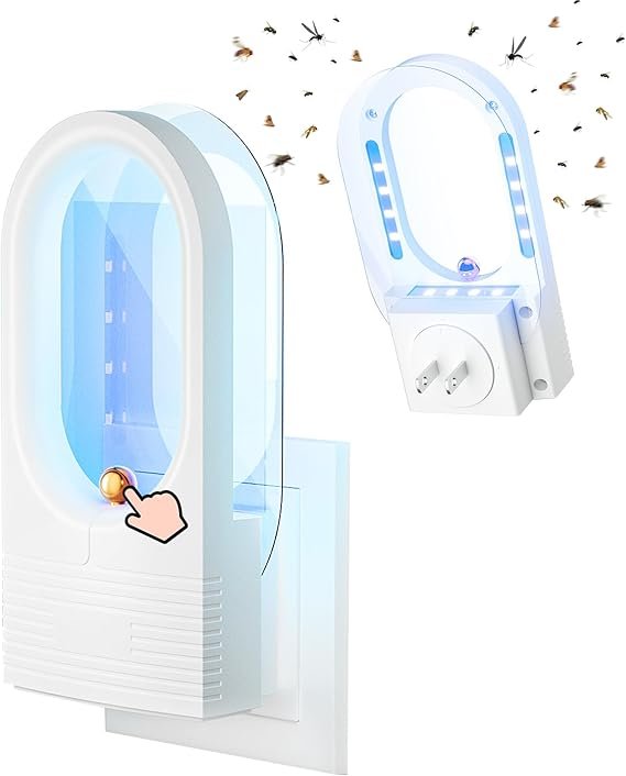 Fruit Fly Trap for Indoors – UV Light Plug-In Gnat & Moth Catcher with 5 Double-Sided Sticky Pads