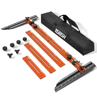 Simplify stair building and remodeling with this Stair Tread Template Tool, designed for quick and accurate measurements. Featuring a snap-to-measure locking system, it adjusts from 8 to 72 inches in seconds without errors. The easy-to-read ruler includes laser-engraved inch and centimeter scales for precise results. Crafted from lightweight, durable aluminum alloy, it resists rust and wear while ensuring long-lasting use. With rounded edges for safety and comfort, this versatile stair gauge is perfect for woodworking, carpentry, cabinet upgrades, and home DIY projects. An essential tool for professionals and hobbyists.