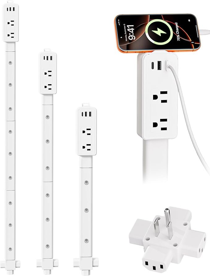 Simplify charging and save space with the Electrical Outlet Extender Stick, a retractable outlet solution designed for hard-to-reach areas like behind couches, nightstands, gaming desks, or kitchen counters. With 4 adjustable lengths (6″ to 34″) and a 4-angle base, it offers flexible vertical or horizontal mounting. Equipped with 2 USB-A ports, 1 USB-C, and 2 AC outlets, it powers multiple devices at once. UL/FCC certified with overload protection, this extender ensures safety and reliability. A practical gift for students, gamers, or home organizers, it keeps cords neat, accessible, and clutter-free.