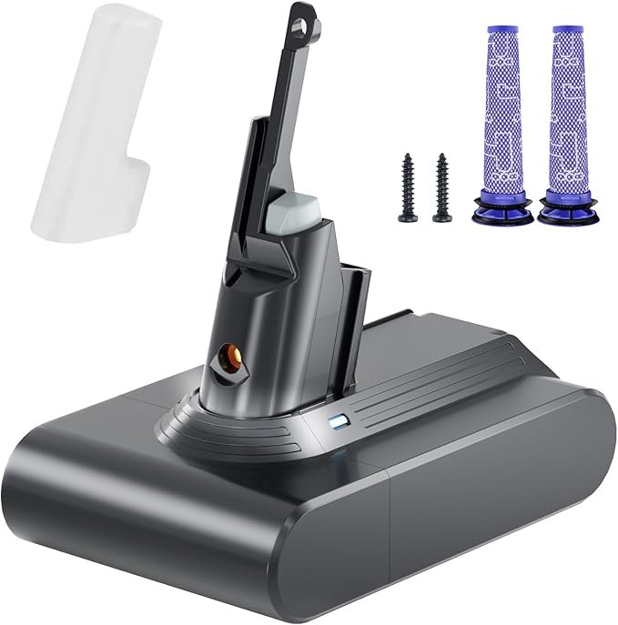 Power up your vacuum with this Battery Replacement for V7, delivering 21.6V 6500mAh Li-ion performance for longer, reliable cleaning. Rigorously tested for over 2,000 hours, it ensures the perfect balance of energy, power, and durability. Compatible with all Dyson V7 models including Animal, Motorhead, Absolute, Trigger, Mattress, Allergy, and SV11, it offers seamless performance. Built with a smart protection board, it provides short-circuit safety, steady voltage, and eco-friendly design. Each pack includes two pre-filters and a user manual, backed by a 1-year warranty. A practical gift for clean, fresh, and pet-friendly homes!