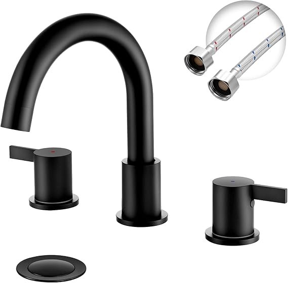 8-Inch Widespread Bathroom Faucet – Two-Handle Matte Black Sink Faucet with Pop-Up Drain & Water Supply Lines