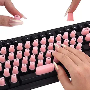 Type with confidence using the 70 Pcs RaisedTip Keyboard Stickers, designed for women and girls with long nails. Featuring 12.5mm elevated silicone bubbles, these chic light pink stickers create extra space between keys, preventing typos and making typing easier. The set includes A–Z letters, numbers, arrows, and symbols, all crafted from soft, skin-friendly silicone with strong adhesive backing for secure placement and residue-free removal. Easy to apply on flat or curved keyboards, they’re a fun and practical gift for office workers, gamers, and nail lovers—perfect for stylish, nail-friendly typing!