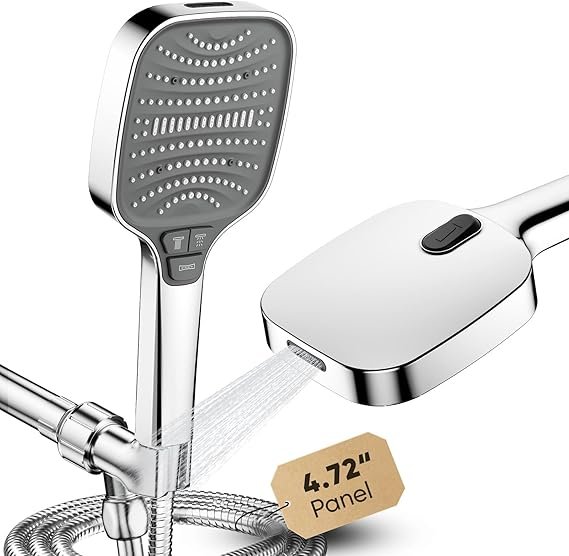 Upgrade your shower with the ENRUNEST High Pressure 8-Mode Handheld Shower Head, designed with anti-clog self-cleaning nozzles for long-lasting performance. Featuring 8 spray settings and a 5-zone power spray, it delivers consistent water pressure while preventing grime buildup. The built-in Power Wash function lets you blast away soap scum, hair, and residue from tub, tile, or even pets with ease—no scrubbing required. Chrome-finished for durability and style, this shower head ensures a cleaner, more refreshing experience. Note: Includes shower head body only; hose not included.